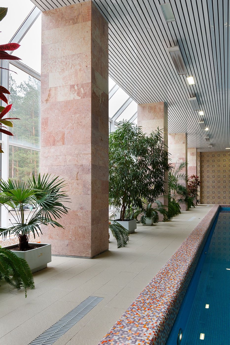 • длина бассейна - 22 м, ширина - 12.5 м, глубина - от 1.13 м до 1.51 м, температура воды - 29⁰с