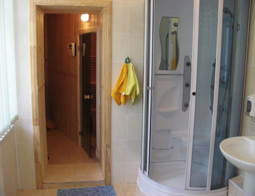 Сан/узел: Сауна, душевая кабина, унитаз, раковина.
